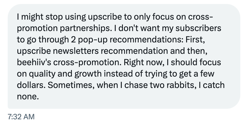 I laid out my idea, fingers crossed for Sparkloop to say, "Absolutely! Just add friends from any platform as long as they're Upscribe users."